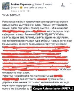 Пользователь “Фейсбука” Асейин Саралаев 4 июня на своей страничке в “Фейсбуке” написал обращение к Госкомитету национальной безопасности. Он потребовал предпринять законные меры в отношении граждан, написавших оскорбительные комментарии о флаге республики.