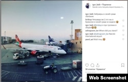 - 22 июля. Байбаков делает пост, на котором виден одномоторный самолет Cessna 182. Подпись переводится на русский так: "Диспетчер говорит: ваш самолет слишком мал, мы не видим его в небе". Радио Свобода удалось установить его регистрационный номер – RA-67717 (подробнее см. врезку).